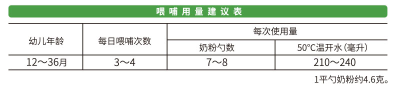 平勺奶粉 依照喂哺用量建議表,加入正確份量(平勺)的奶粉,請勿刻意壓平量勺。